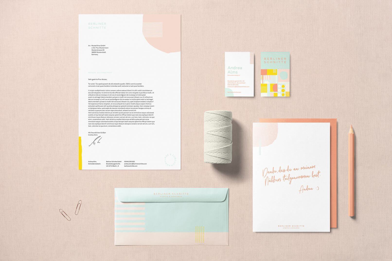 A creative, dynamic branding as colorful and diverse as the fabrics should be here. The basis for this are different patterns, these are combined freely and creatively. For tranquility, there is a harmoniously coordinated color world, from summery pastel tones. The modern and timeless San Serif reinforces the brand communication.